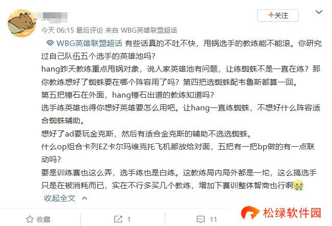 直播吧2月12日讯 2025LPL第一赛段,WBG小组赛鏖战五局不敌JDG落败,赛后WBG粉丝纷纷在超话发帖要求管理层换教练,个别粉丝甚至直接上升到了所有LPL教练:现在看明白了lpl教练都是狗篮子,没多高智力!
