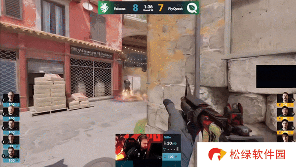 FlyQuest先做进攻方。手枪局,Falcons爆弹打B,CT做到二换二,Magisk关键时刻双杀拿下手枪局。
