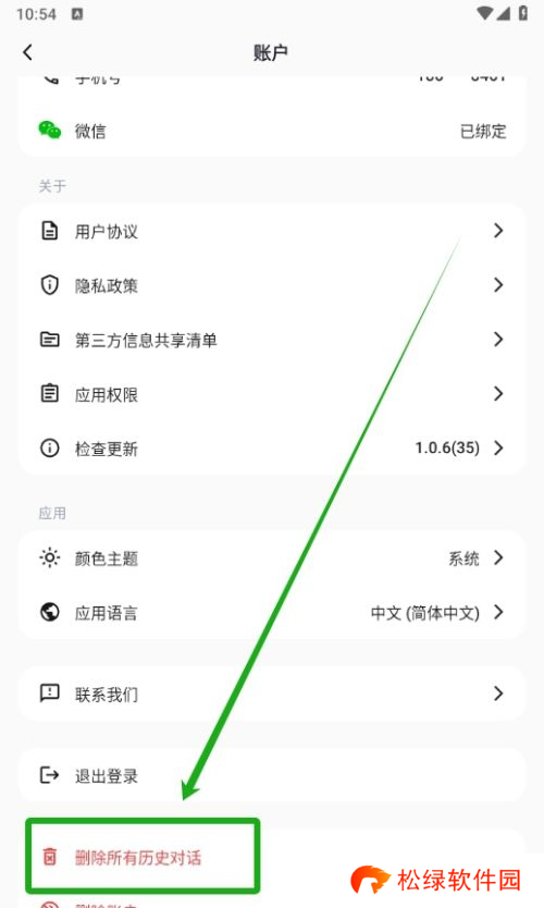 3、最后,选择【删除所有历史对话】选项以清除对话记录。