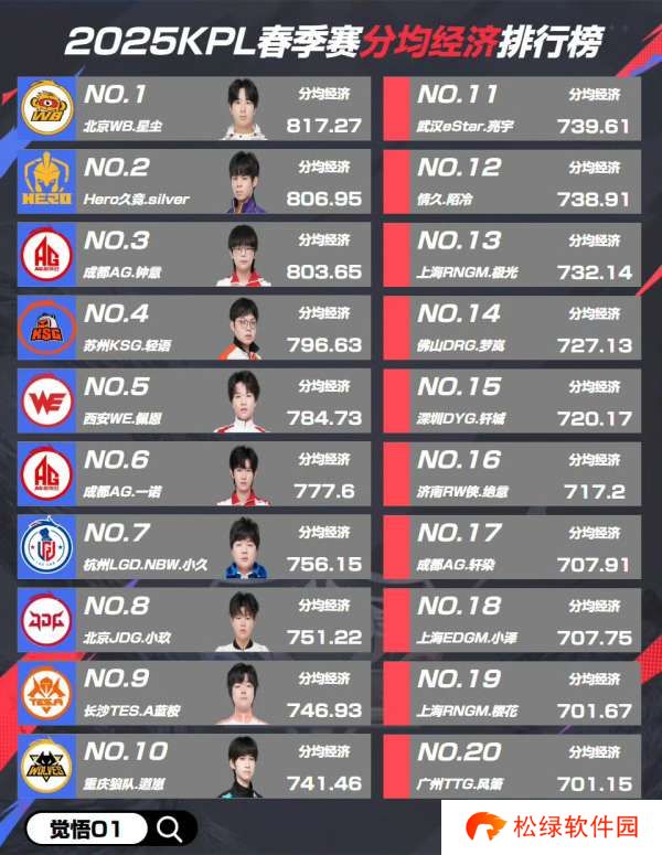 第一周各项数据排名:紫幻KDA第二,钟意分均经济第三,招人场均击杀第一