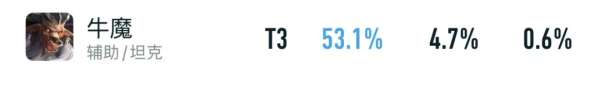 不过,因为牛魔没有续航+操作难度偏高,所以,即便他有53.1%的全分段胜率,都只能排在T1下游的梯队中。