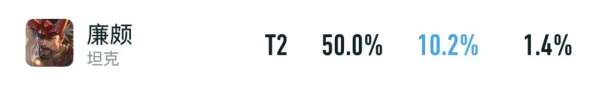 也正因如此,廉颇在巅峰赛里,才能保持着50%胜率+10.2%出场率,是唯一出场率超10%的坦辅。