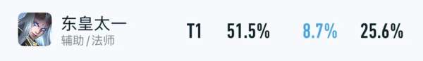 以上是东皇太一的顶端局数据,51.5%胜率+34.3%BP率,已经能排到辅助榜的上游位置了。
