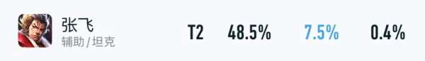 而坦辅则因为在对线期里,帮不了太多忙,导致优先级越来越低了,即便是张飞这样的“万金油”,也仅有48.5%胜率+7.5%出场率,就更别提别的坦辅了。