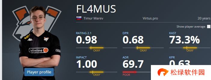 目前,FL4MUS在效力Virtus.pro以来的平均rating为0.98,ADR 69.7,数据如下: