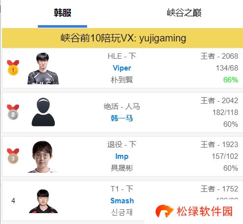 昨日HLE选手Viper在韩服排位走出一波五连胜,排位分来到惊人的2068分,位列韩服第一!
