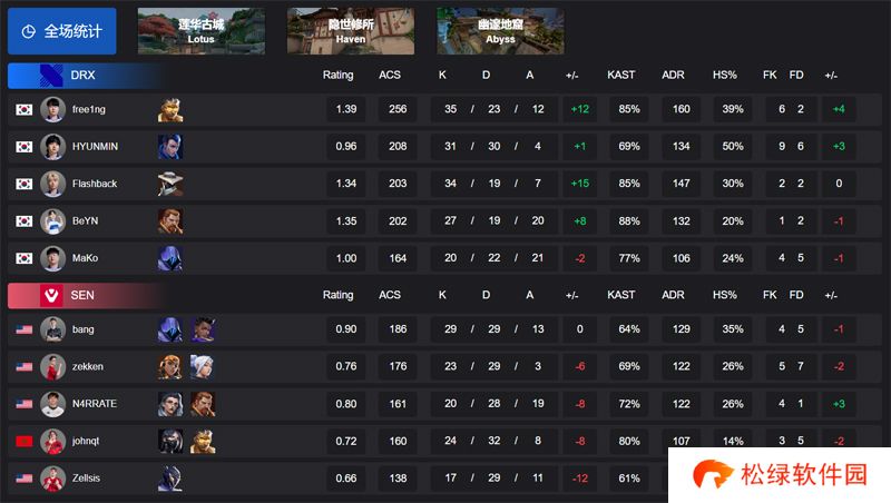 图一莲华古城,DRX拿下手枪局之后收下ECO分数,而SEN在赢下福利局之后再次被DRX拉开比分,从第九回合开始,DRX一波8:0直接将比分锁定在DRX 13:3 SEN。