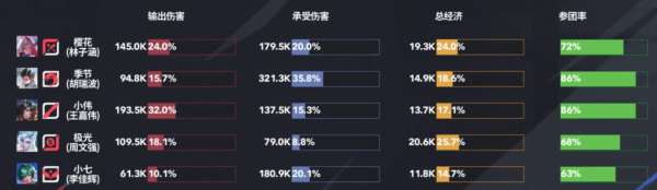 拖了两条风暴龙王的超长对局,一个影的输出占比比自家敖隐高6个百分点。