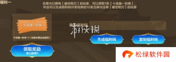 1、有破空枪刃的玩家可以生成福利码给其他玩家,数量为10名。