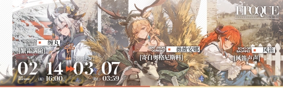 活动说明:活动期间【她们渡船而来】限时寻访开启,该寻访中以下干员出现率上升
