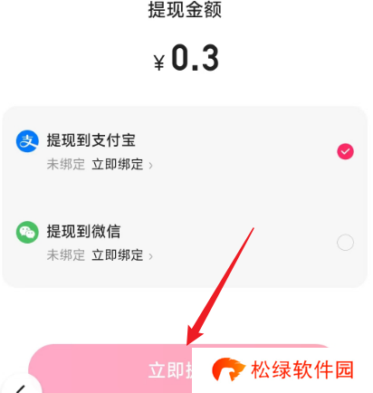 4、选择绑定微信或支付宝账号,并点击下方的【立即绑定】进行操作,最后点击【立即提现】按钮即可。