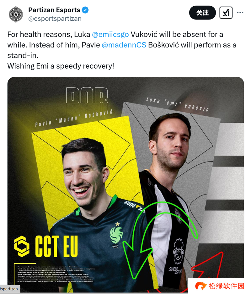 日前Partizan俱乐部在社交平台发布动态,表示队内塞尔维亚选手emi因健康原因将缺席一段时间。因此Maden将会作为救火队员加入战队参加即将到来的赛事。