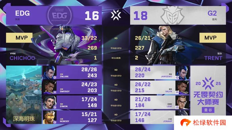 2025 VCT 曼谷大师赛,瑞士轮第二轮1-0组,EDG在先丢一图的情况下,完成了让一追二的逆转,击败了对手G2,晋级四强!