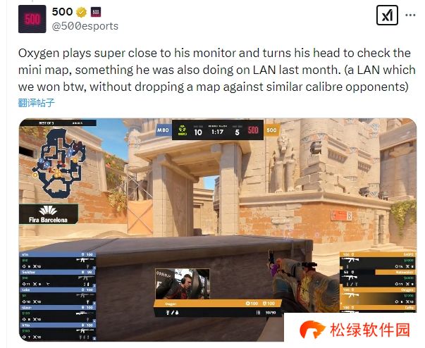 oxygeN打比赛的时候脸都是贴着显示器的,一直都是转头看小地图,他上个月在线下比赛时也做了这样的动作。(对了,那场比赛我们赢了,面对实力相当的对手,我们一张地图都没输。)