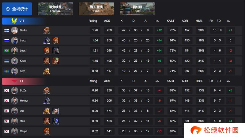 2025 VCT 曼谷大师赛来到第二比赛日,瑞士轮首轮的比赛,VIT直落两盘强势击败了T1,拿到了自己的开门红。其中大德老师和Less的在本场比赛展现出了比较强大的实力,各自拿到了全场最高的42总击杀。