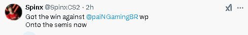 Spinx:在对阵paiN的比赛中取得胜利,大家表现出色。现在进入半决赛。