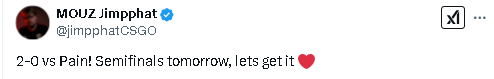 MOUZ战胜paiN晋级PGL半决赛 赛后双方动态一览