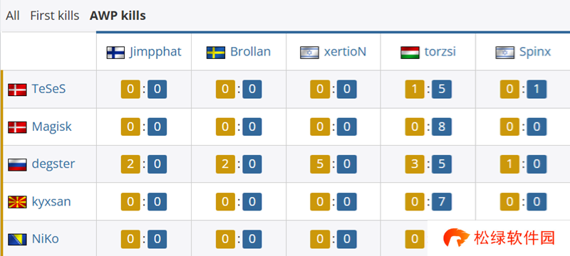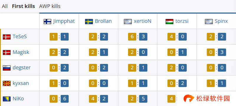 TeSeS为Falcons贡献15个首杀,NiKo则为队伍贡献13个首杀。而MOUZ方面Jimpphat贡献11个、xertioN贡献10个、Spinx贡献9个。