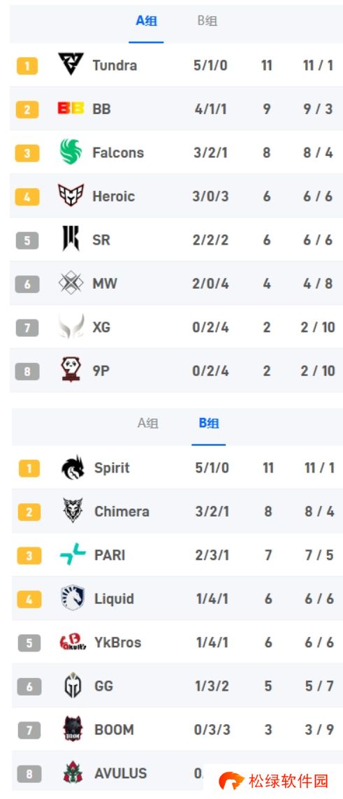 Tundra、BB和Spirit率先晋级小组赛第二阶段,9Pandas、XG、BOOM和AVULUS已确认被淘汰。