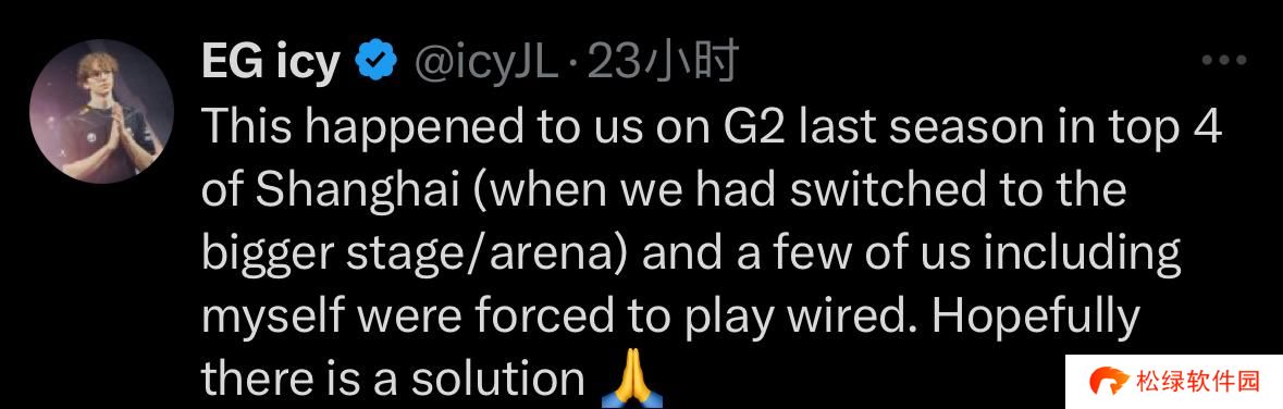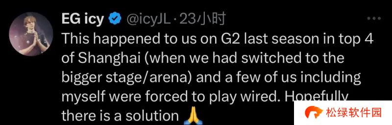 -EG选手icy:上赛季我们在上海四强赛中就遇到过这种情况(当时我们已经换到了更大的舞台/竞技场),包括我在内的几个人都被迫很不舒服的玩游戏。希望有解决的办法