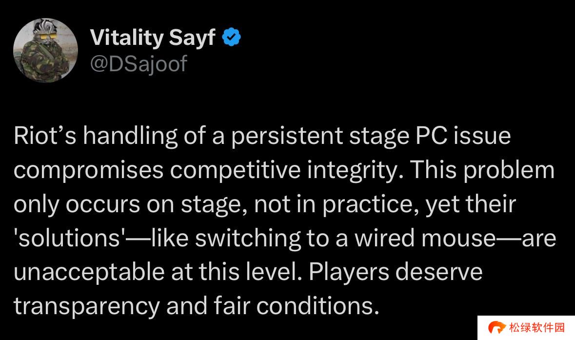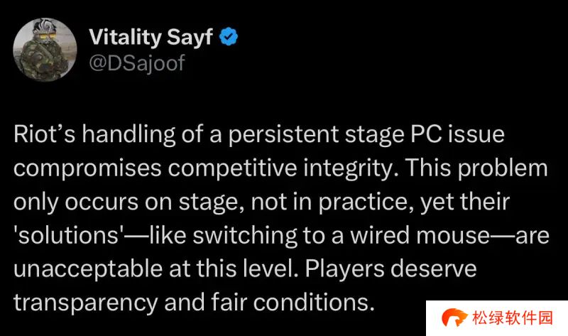 VIT选手Sayf发推吐槽:在比赛电脑问题上,拳头影响了公正性