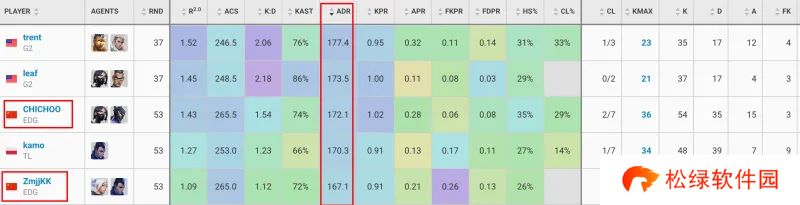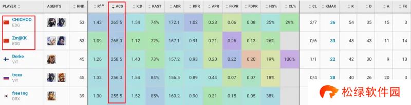 ACS平均战斗评分:CHICHOO、ZmjjKK位列前二