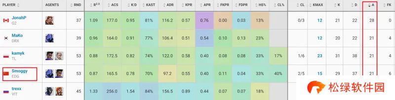 助攻数:Smoggy第四