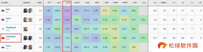 击杀阵亡比:CHICHOO位列第四