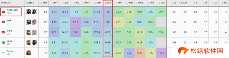 KPR回合均杀:CHICHOO位列第一