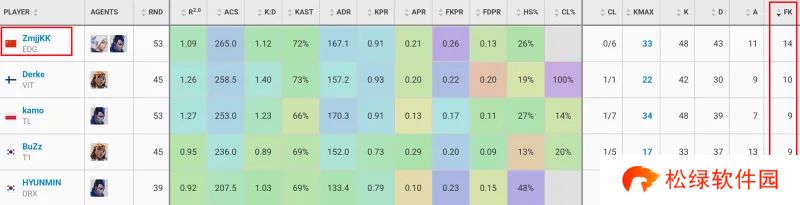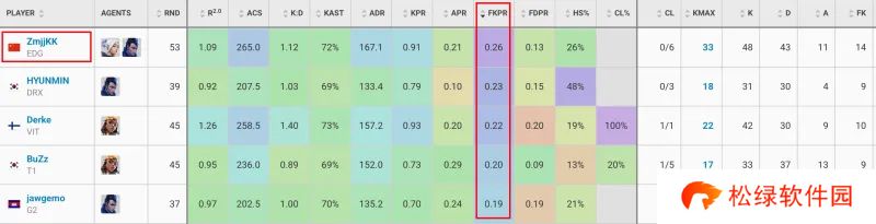 FKPR平均每回合首杀:ZmjjKK位列第一