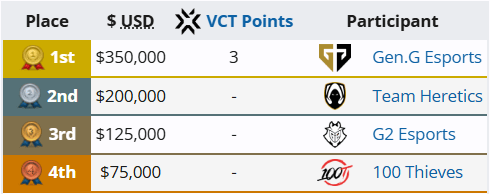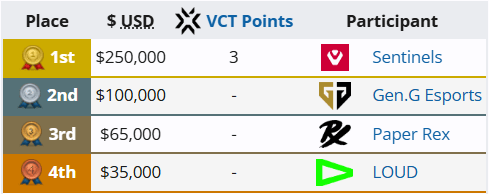 自VCT联赛成立以来,国际赛事首次四强由四大赛区各占一席