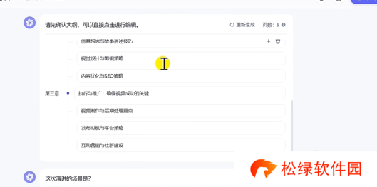 3、生成PPT大纲后,先浏览一下大纲是否符合要求,可通过编辑内容进行修改。