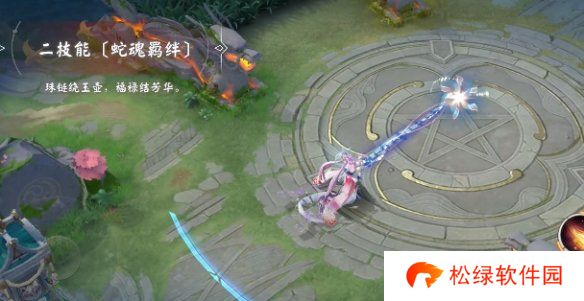4、二技能·蛇魂羁绊:攻击后会出现一个花朵或酒葫芦,然后对目标造成伤害并建立链接。