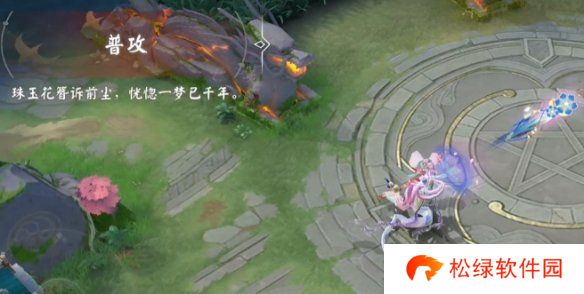 1、普攻:使用后出现一个蓝色花朵并对目标造成伤害。