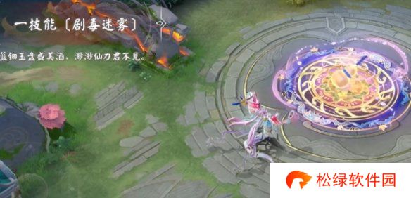 3、一技能·剧毒迷雾:触发后指定区域就会出现圆形迷雾,中间还有一个酒葫芦。