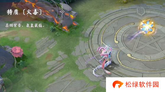 2、特质·火毒:使用后同样出现一个花朵,然后会对敌人造成伤害和火毒效果。