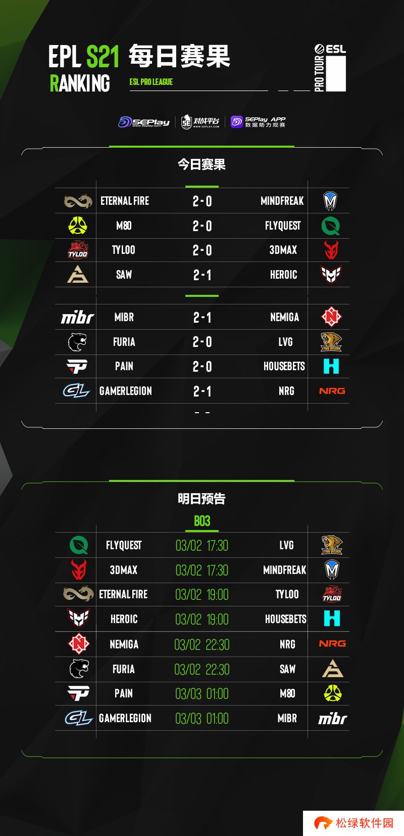 EPL S21入围赛首日赛果、次日预告和积分一览