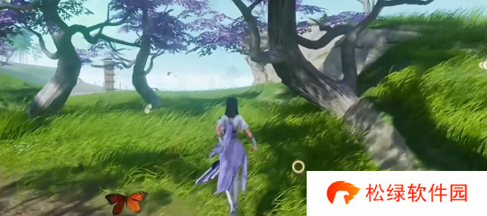 2、宝箱2:沿着山路向前走,追上蓝色的蘑菇,得到箱子,附近还有一个无名石碑。