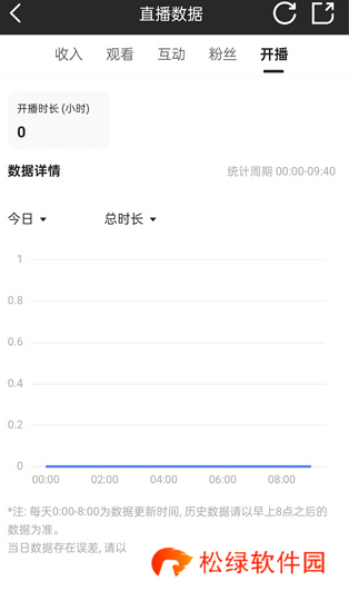 5、在直播数据页面,点击【开播】,即可看到数据。