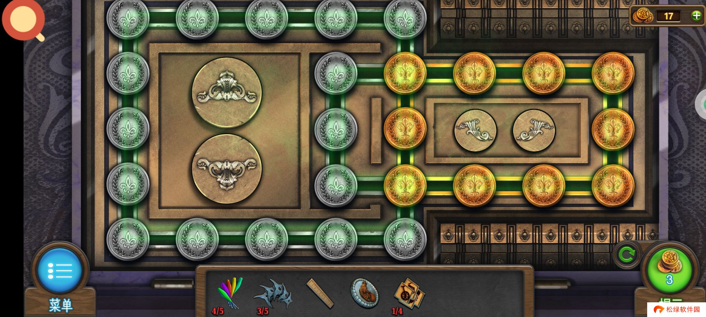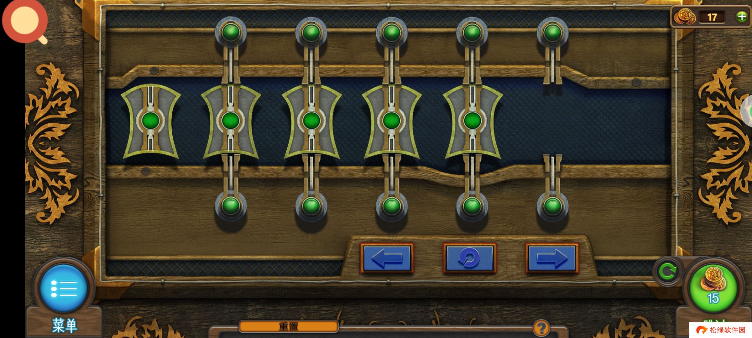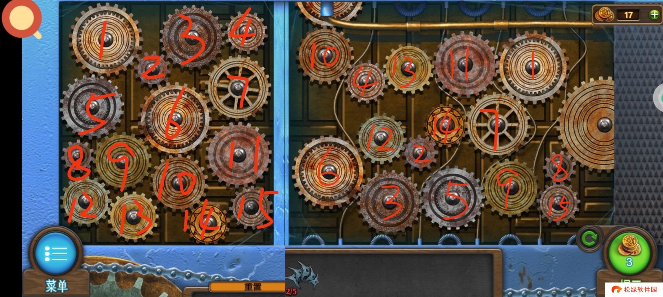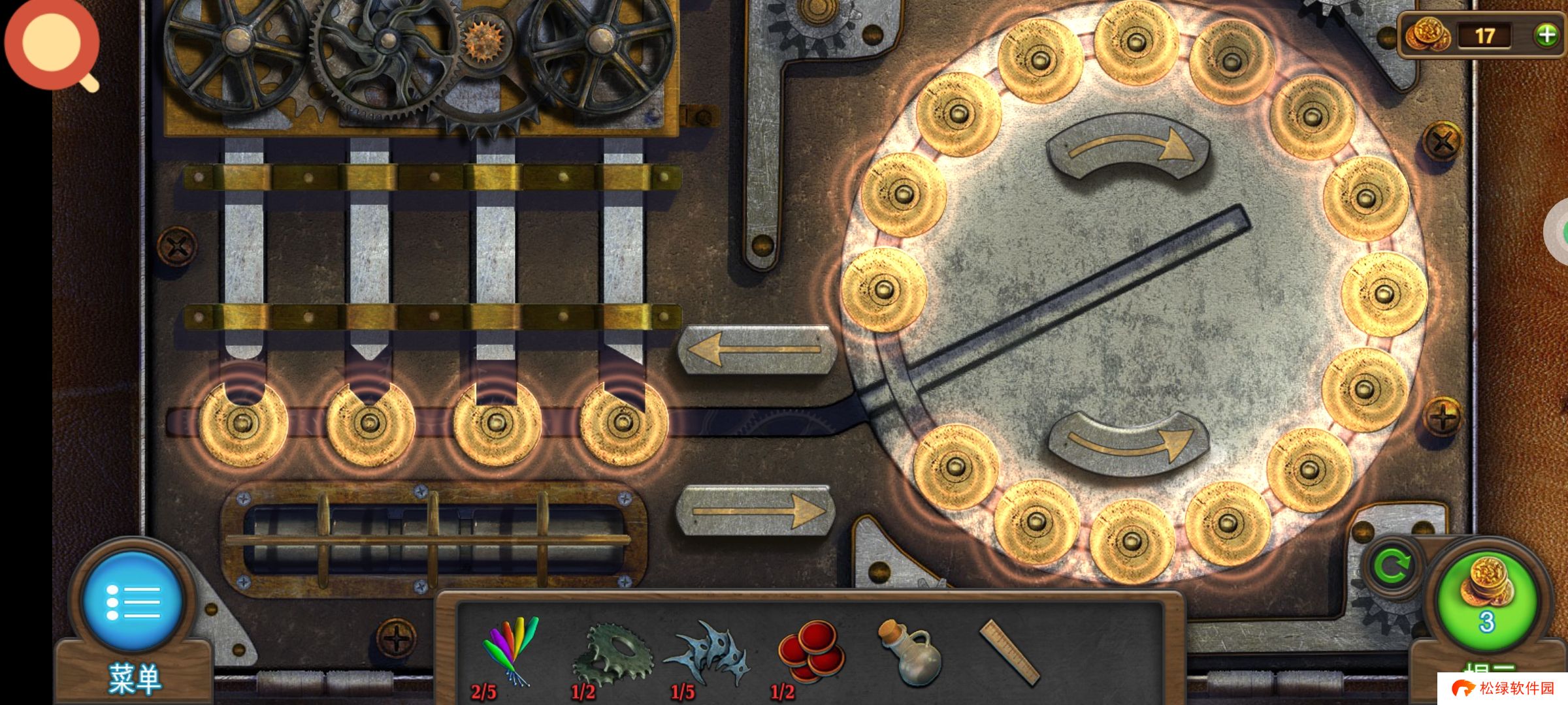 返回道具库,点击红圈使用油和扳手,获得道具:①链条,②齿轮2。