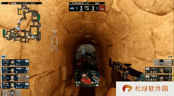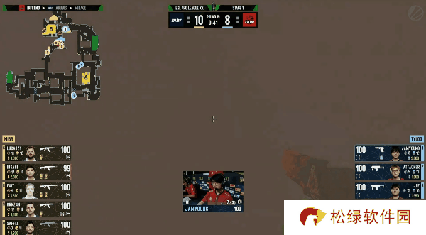 下半场MIBR来到进攻方,手枪局第二时间爆弹B区,展开进攻后被Mercury与JamYoung两人四杀挡住。输掉回合后MIBR选择纯e。