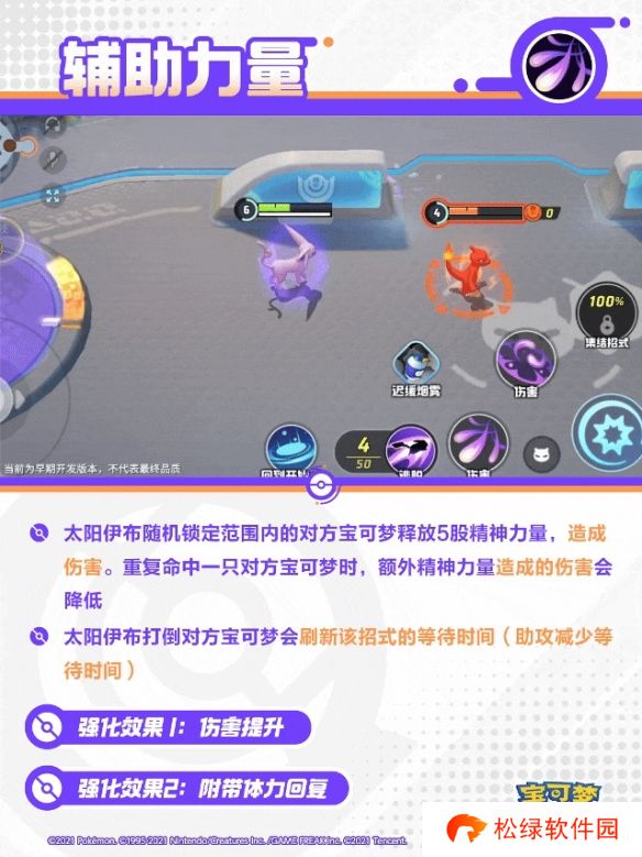 太阳伊布打倒对方宝可梦会刷新该招式的等待时间(助攻减少等待时间)。