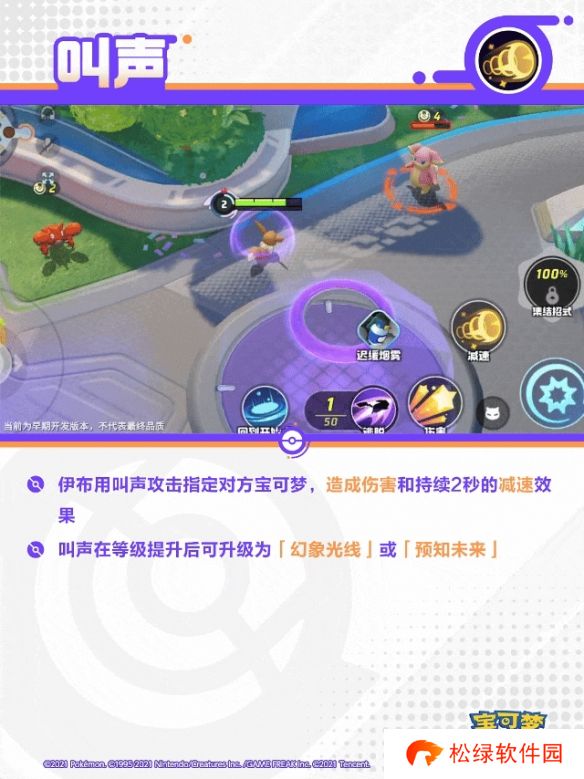 伊布用叫声攻击指定对方宝可梦,造成伤害和持续2秒的减速效果。