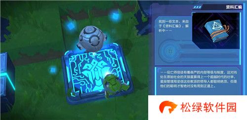 4、搬着箱子进入遗迹后,大家就可中间位置发现遗失的机器人,使用随身智能进行调查就可获得一份资料汇编。