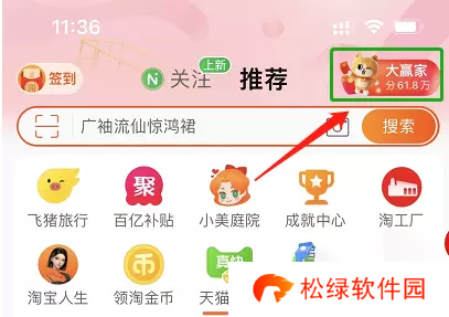 第一步打开淘宝,在淘宝首页可以看到【大赢家】的小图标,点击进入;