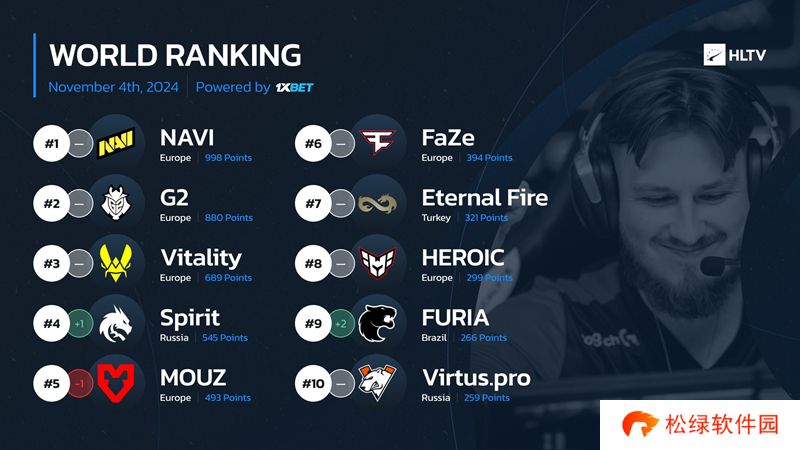 当我们对比HLTV所颁布的世界排名来看,情况则是有所不同。火力值强大的MOUZ取得的成绩明显不尽人意;而