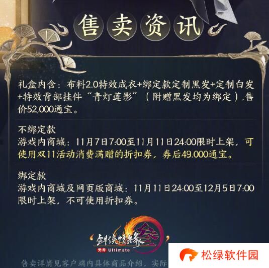 3、礼盒售价为52,000通宝,绑定款不可使用折扣券。