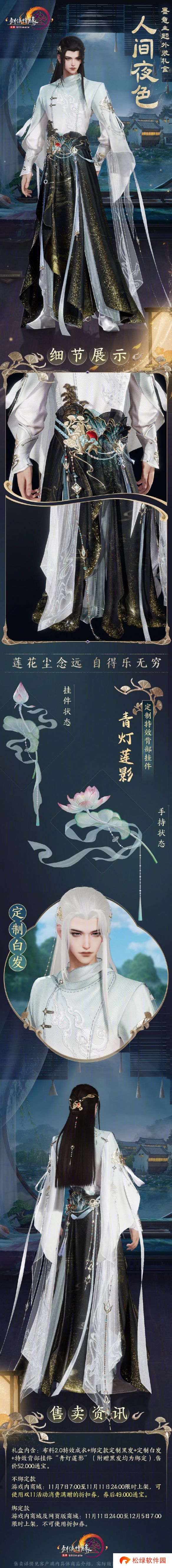 人间夜色礼盒购买后可获得额外的时装特效,很多玩家都想知道人间夜色长什么样,本次的**以白色和黑金色为主要的配色,还有配套的定制白发、特效背部挂件可获取,接下来就由小编给大家带来了《剑网3》墨意主题外装人间夜色外观一览。