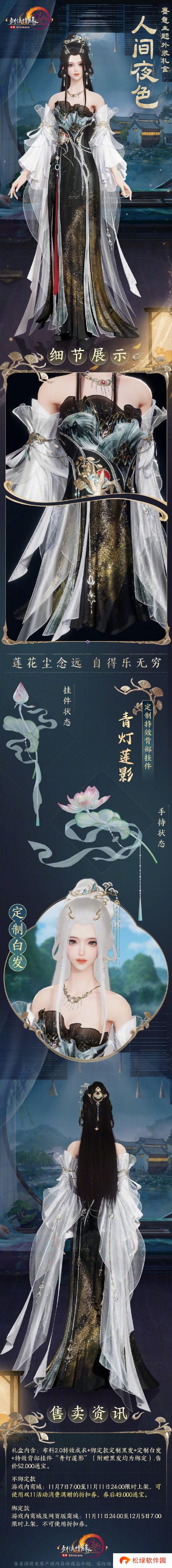 2、礼盒内含:布料2.0特效成衣+绑定款定制黑发+定制白发+特效背部挂件“青灯莲影”