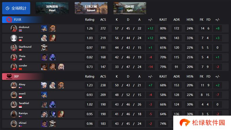 图一深海明珠,FLY 4:13 XIP,图二日落之城,FLY 13:8 XIP,图三霓虹町,FLY 13:15 XIP。虽然FLY阵中来自泰国的dodonut选手以及来自加拿大的evv选手分别拿到了全场最高和第二高的57、56总击杀,但最终还是没能帮助队伍取得胜利。